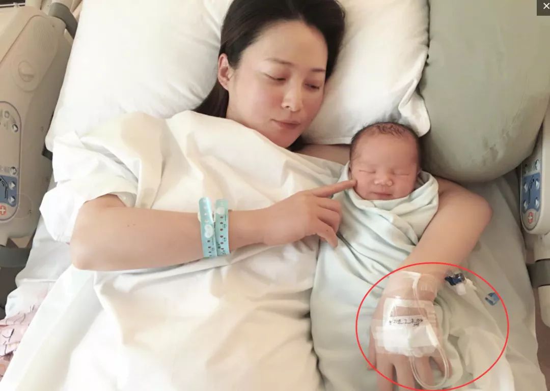 值得一提的是蒋勤勤抱着宝宝虽然满脸幸福,但是不难看出她产后很是疲惫,手背上粘满了白色输液胶带,手臂也水肿明显,令人感叹母爱的伟大啊。