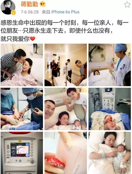 这几天产后的蒋勤勤一直在住院调养,7月6号,截止产后已经过去四天了,蒋勤勤身体应该是恢复得差不多了,她首度更新微博晒出了自己生产前后的全部过程,令人感叹母爱的伟大。