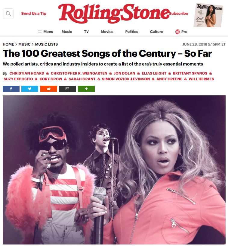完整榜单(The 100 Greatest Songs of the Century – So Far):
