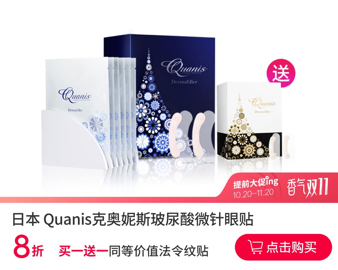 双11买不仅享8折优惠,更有买一送一的(送同等价值的法令纹贴)超大福利!全年最低价就在今天喽~