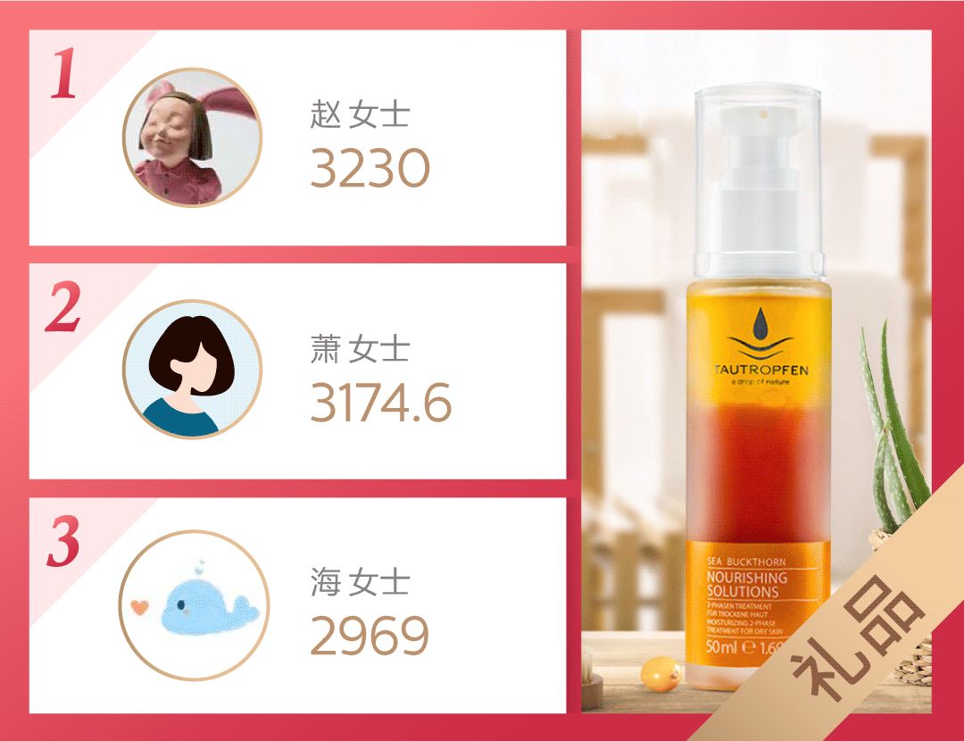 ↑这是10.8-10.14在咱们店铺消费最高的三位剁手皇太后,女王分别给你们寄出了一份礼物哦~