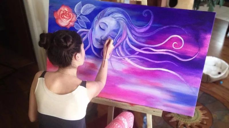 她的画也很梦幻,如她的人一样,带着深情的想象力和表现力,这些画同时也为她的音乐创作带来了很多灵感。