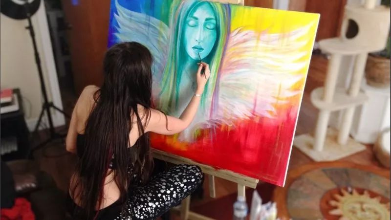 其实朱莉娅不仅仅是歌手和乐手,她同时也是个出色的视觉艺术家。她有自己的视觉工作室,平时不玩音乐的时候,她的大部分时间都在画画。
