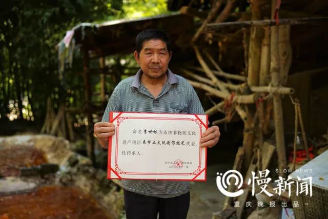71岁的李世林目前是市级“奉节土火纸制作技艺”代表性传承人