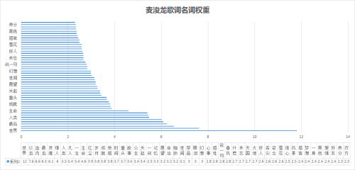 我用现成的爬虫工具简单抓取了麦浚龙部分歌曲并生成分析,从他部分歌中提取的关键词词云: