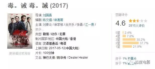 最近上映的一部《毒。诫》,演员阵容汇聚刘青云、林家栋、古天乐、张晋、江一燕等实力派演员,豆瓣上却只有4.6分。