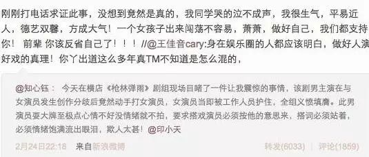 结果,就在同年2月24日晚,微博曝出“印小天在片场殴打女演员边潇潇”的消息,随后边潇潇发微博称印小天对其动粗,印小天则指天发誓称没有动手,双方的说法大相径庭,上演了一场古怪的罗生门事件。
