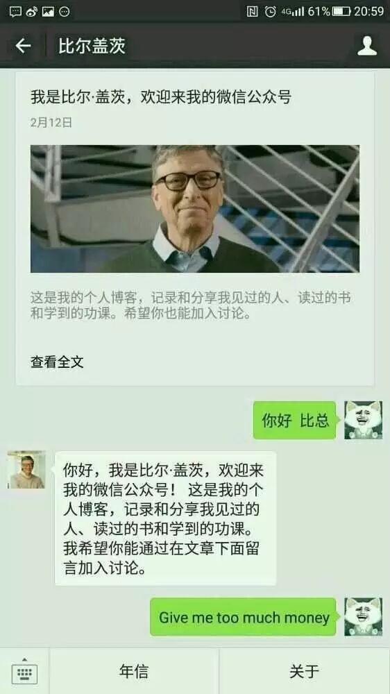 比尔盖茨这次开通微信公众号,显然不是为了给网友发钱,而有着更大的“野心”,应该与宣传其成立于2000年的比尔和梅琳达·盖茨基金会有关。