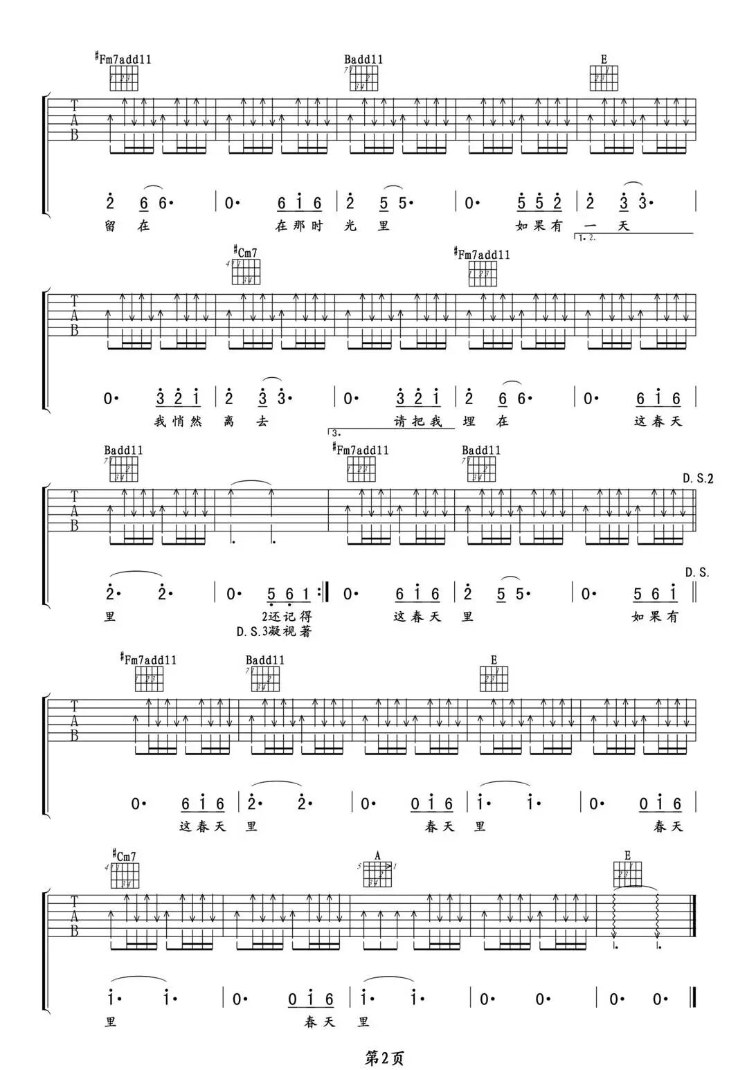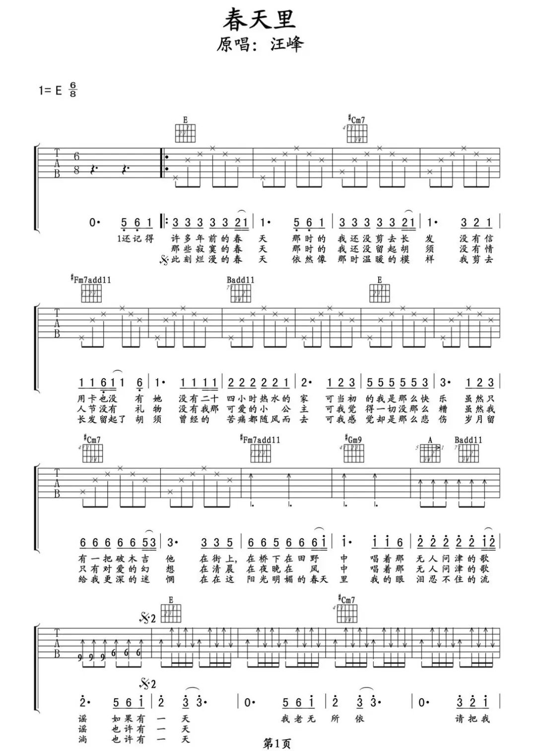 汪峰《春天里》吉他谱
