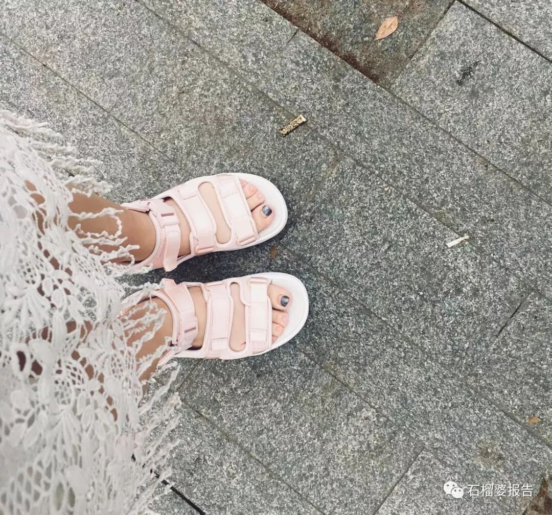 “怎么也想不到自己会买一双运动品牌的魔术贴凉鞋!但谁让上脚就超级舒服呢?安利给活开了的各位女士。”