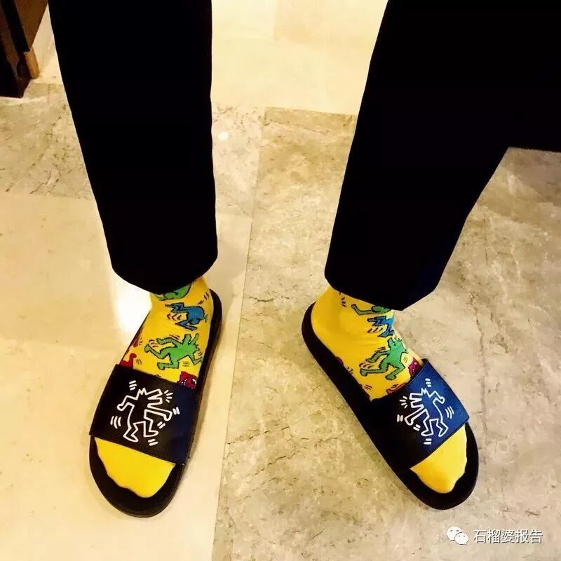最后,来一位男性读者的澡堂拖袜子搭配。