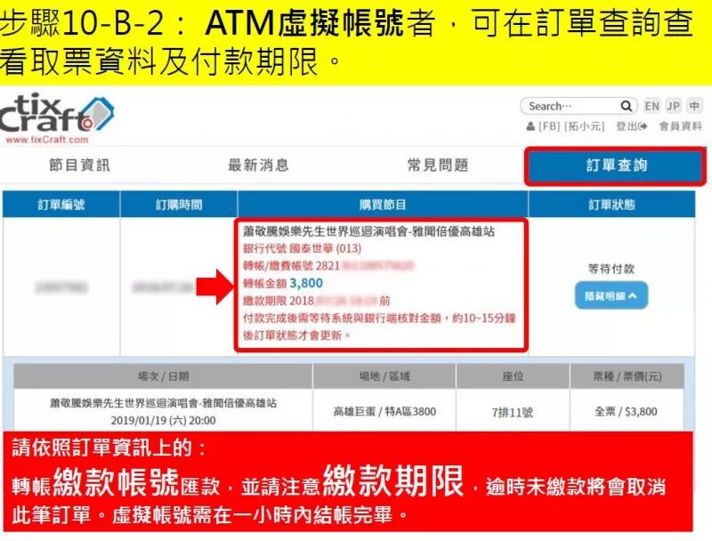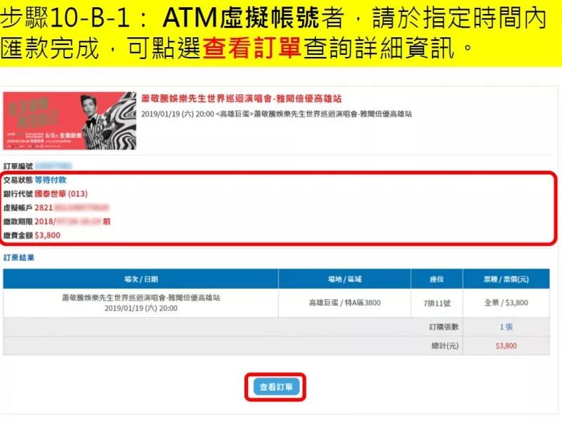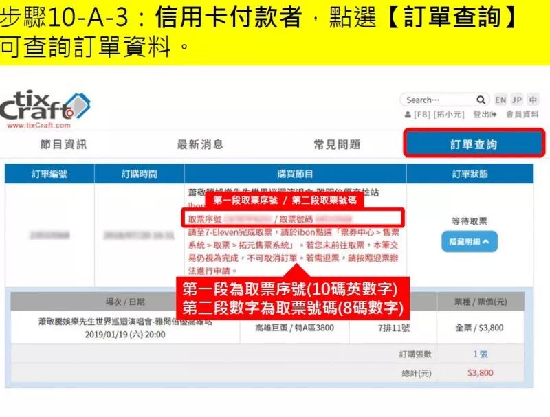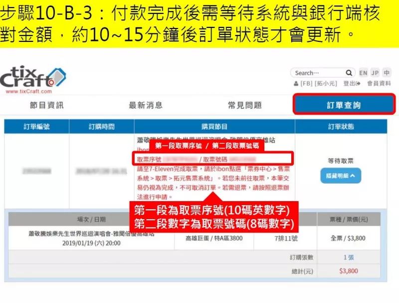 请依照系统画面指示,分别输入【取票序号、取票号码】,并打印取票缴费单。(取票序号及取票号码,可于【订单查询】中查看)