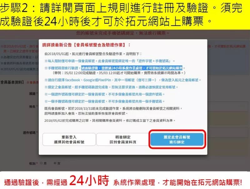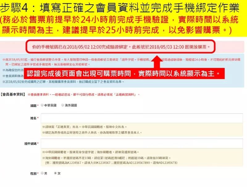 欲购票者,建议于节目开卖前25小时,完成加入会员及手机号码验证。(验证通过24小时后,才可购票)