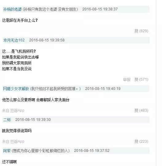 更有人猜测说是不是飞机的厕所?但有人指出,但也有人指出是郑爽的房车厕所,总之就是有网友议论到她的素质问题!