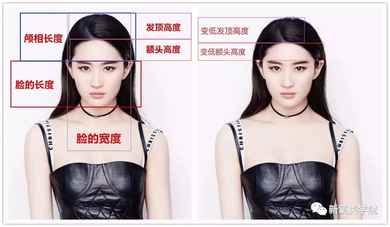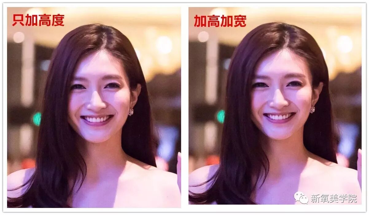 但是如果本身底子合适,宽度够(压缩的刘亦菲),只提高的效果也会好,也就是说,颅顶的形态也会对脸部有影响,不仅是高度。