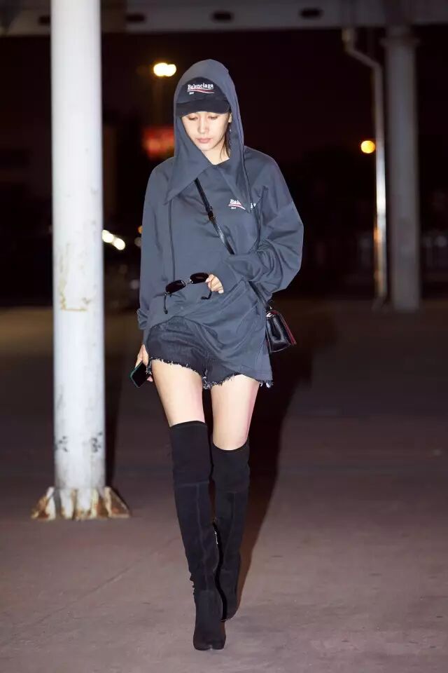 王子文的身材比较娇小,所以大多时候王子文都会穿上短裤/短裙+高跟鞋,这样的搭配可以拉高身材比例。