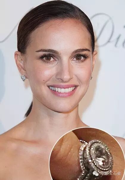 本杰明·米派德在珠宝设计师Jamie Wolf的帮助下,为娜塔丽·波特曼设计了一款圆形钻石切割戒指,十分符合波特曼追求简约环保的理念。