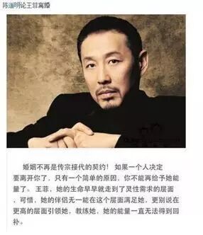 他还特地提到去年在微信和微博疯传的《陈道明看王菲离婚》的小文,文中颇多禅意和对生活的参悟.他提出来是为了再一次澄清,“那不是我写的.我也不知是谁把这么好一篇文章放我名下。”