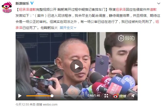 上周五,钮承泽豆导也为性侵事件作出了“道歉”,并且对大众表示“一场公审正在进行……钮承泽已经死了。”