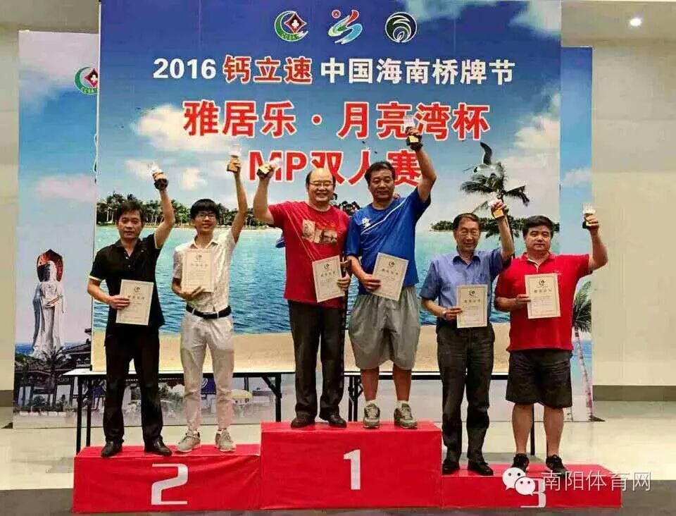 南阳市桥牌协会,在2016年海南桥牌节上获得MP双人赛南阳市第一个国家赛冠军,在IMP双人赛中,南阳参赛选手取得了亚军!