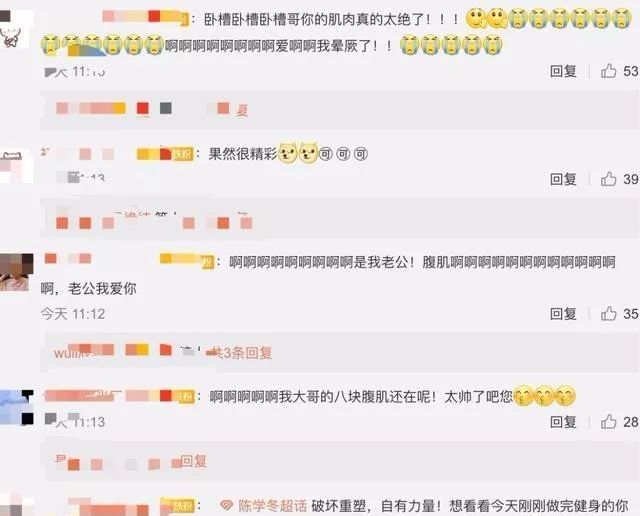 看到自己的男神如今身材越来越好,粉丝们纷纷不淡定了,纷纷喊出“陈学冬太酷了”“好A啊,我可以”~
