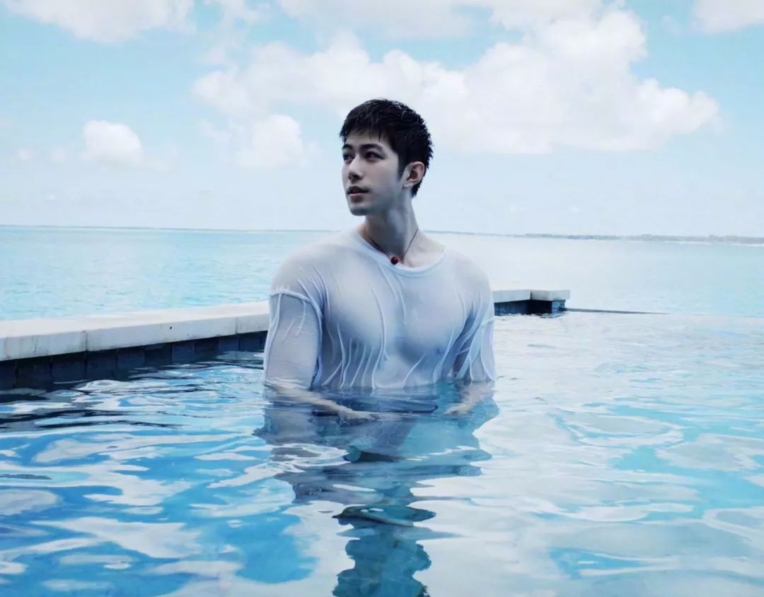 穿着白T恤游泳后,隐隐约约能看到胸肌轮廓,这样低调的帅气深得女人心!
