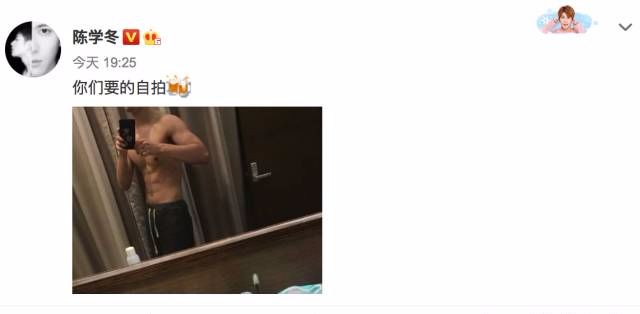 其实,这已经不是陈学冬第一次给粉丝们发福利身材照了!