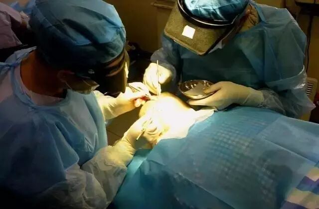 提取毛囊是胡须种植的过程中最关键的一步,先要清洁头皮,医生在对受术者的后枕部做好局麻后,进行毛囊提取,最后将提取出的毛囊放置在已消毒的医用纱布上备用。