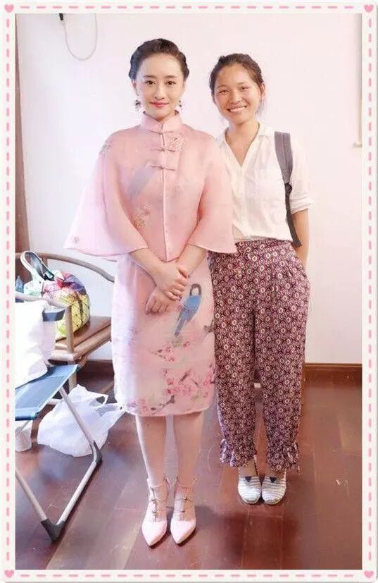 一身粉色的连衣长裙比较的个性独特,充满中国风韵味的上衣很惊艳呢,宽松的袖摆增添几分飘逸的感觉。