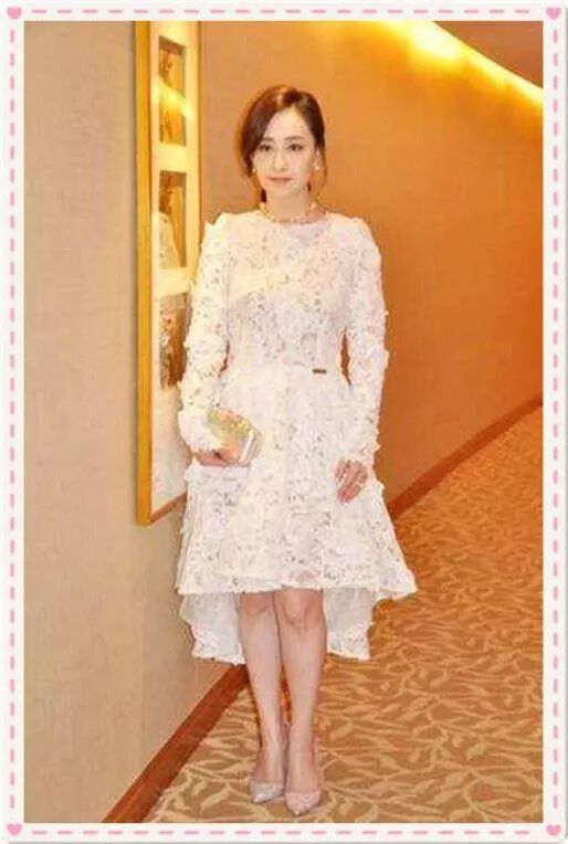 这张未p图就有点一言难尽了,给人感觉很胖,而且五官也发生了变化,裙子的镂空比较考究,恰到好处。