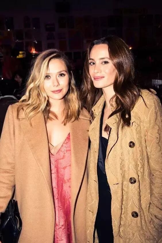 Elizabeth Olsen喜欢跟闺蜜来个姐妹look,从外套到唇色都完美契合,选用的裸粉色唇膏,更显默契与活力。