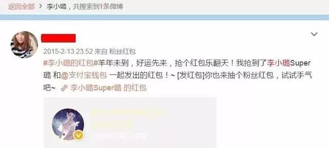 相比之下,她和老板娘李小璐平常的互动似乎很少,搜索这位助理的微博中,关于李小璐的只有一条内容,还是关于红包抽奖的,估计私下关系也不很熟吧。
