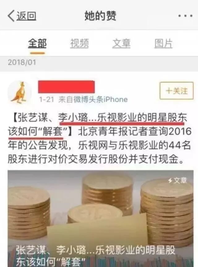 之后,这位小助理又持续点赞了一些黑李小璐的文章,就连李小璐投资的乐视影业也没有逃脱,她的这番点赞,不少网友觉得都是在嘲笑李小璐投资失败。