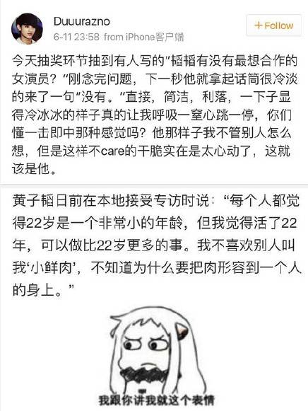 这个来看,wuli韬韬确实是个耿直boy啊~