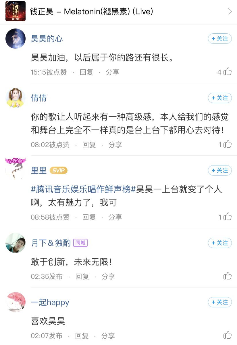 酷狗网友们也被钱正昊台下高冷台上欢脱的性格吸引到,直呼“太有魅力了”,敢于创新的音乐精神也让人觉得这位少年“未来可期”~