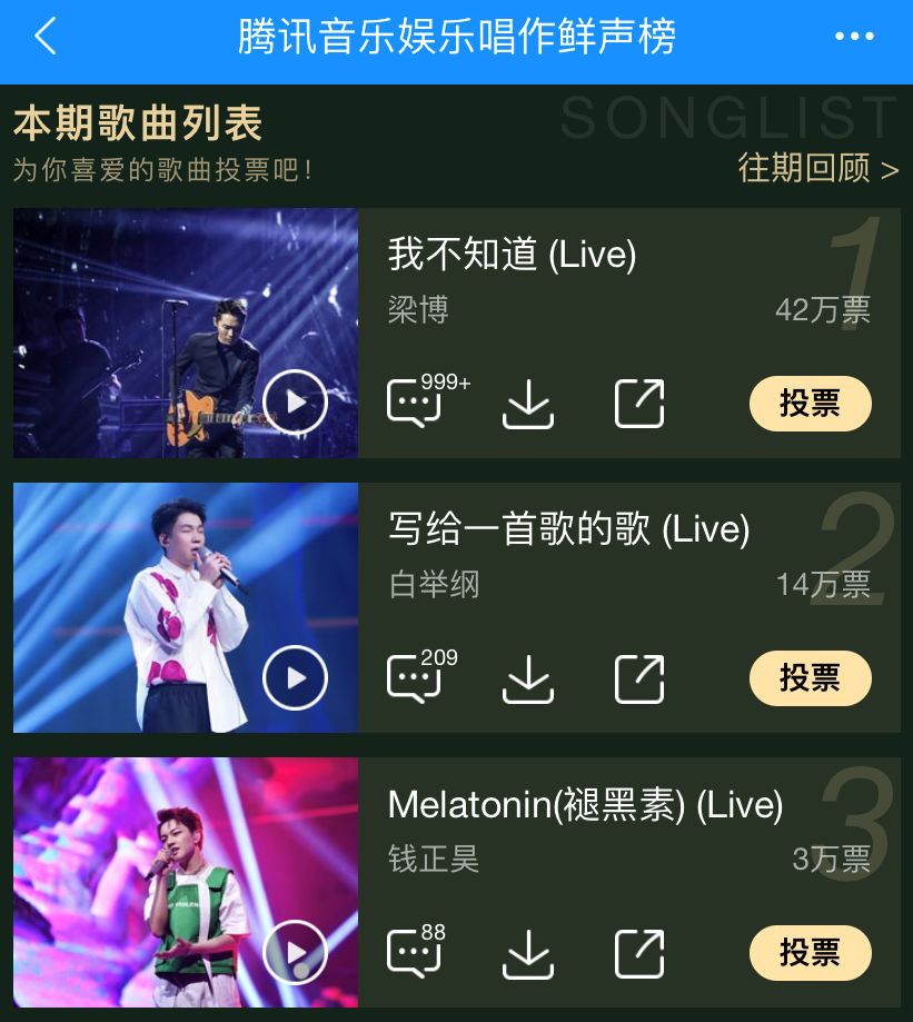 与梁博battle的白举纲也收获众多好评,《写给一首歌的歌》更以14万票荣登唱作鲜声榜TOP2!白举纲此次就别出心裁地以“拟人法”作歌,把音乐当成自己的朋友,以特别且擅长的方式回馈音乐这位“友人”。