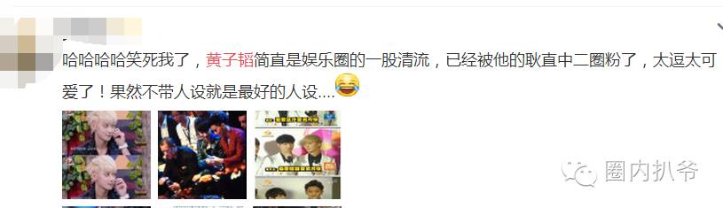 扒爷看到是有人整理了一些黄子韬的耿直段子,然后说,黄子韬才是娱乐圈的一股清流,而且暗指别的鲜肉带了人设呢。。先呸一句。。