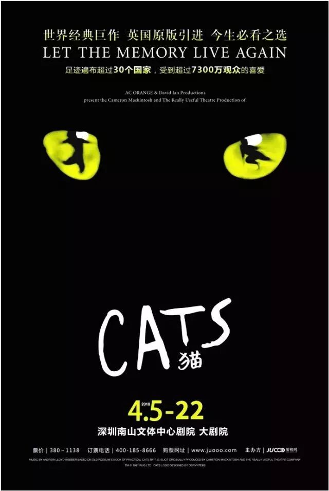 迄今为止,《猫》被翻译的语言版本超过15种,足迹遍布30多个国家,超过20000场演出,至少8100万观众看过这部音乐剧。