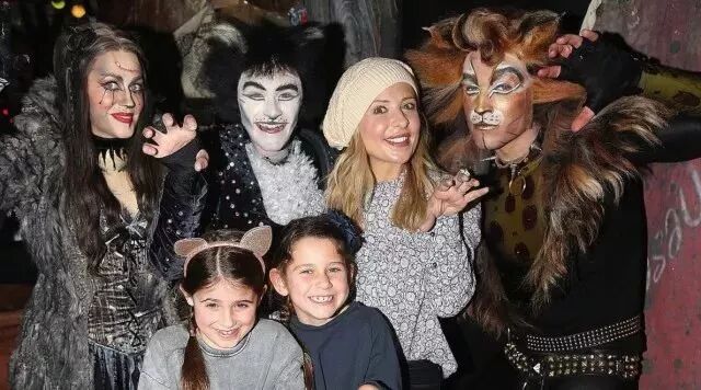 《吸血鬼猎人巴菲》女星莎拉·米歇尔·盖拉带着七岁女儿和女儿的小伙伴在百老汇后台与《猫》演员合影