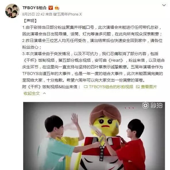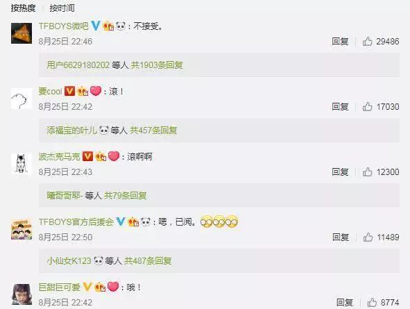 TFBOYS的官博也在8月25日登出了声明。纵观评论区,大部分的粉丝不能接受官博的说明。毕竟受到伤害的是他们的idol。