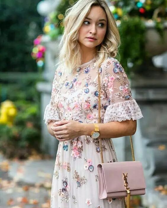 如果大家想偷懒,可以直接选择一件式纱裙,就是连衣裙,配同色系包包和高跟鞋就非常美丽,省事还不会出错。