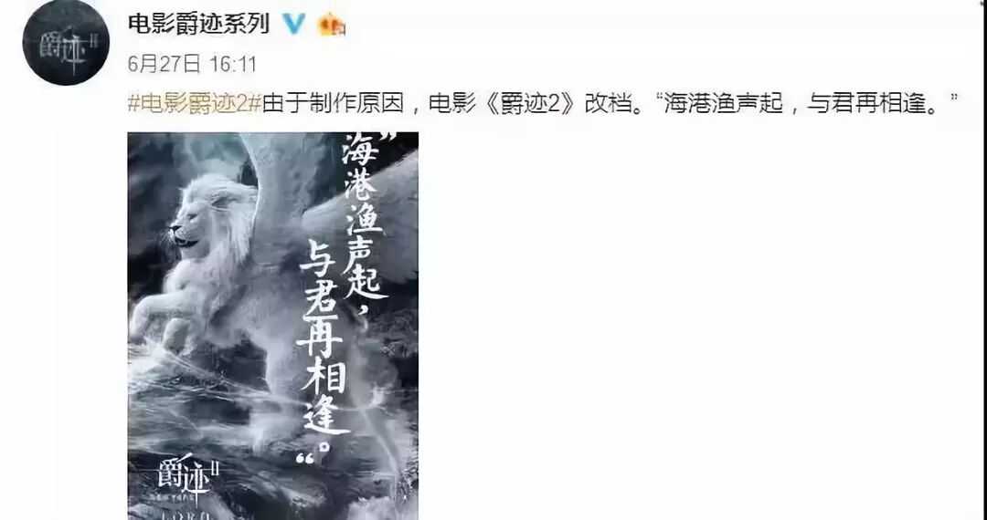 广告的事还没弄清楚,电影《爵迹》的官微又发微博称因制作问题原定上映的《爵迹2》改档,具体时间不详。这改档的新闻一出瞬间就引起了网友们的热议,大家都猜测改档的原因是不是因为范冰冰。