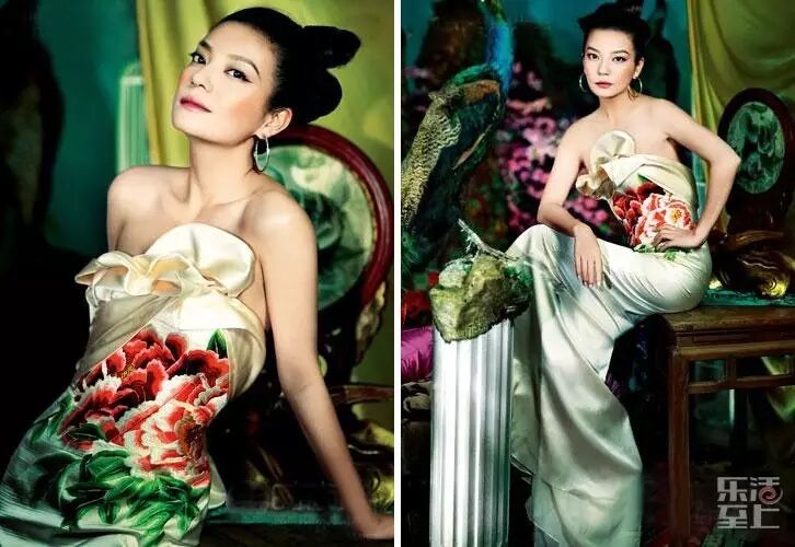 赵薇穿着拍时尚大片的这件“花开富贵”