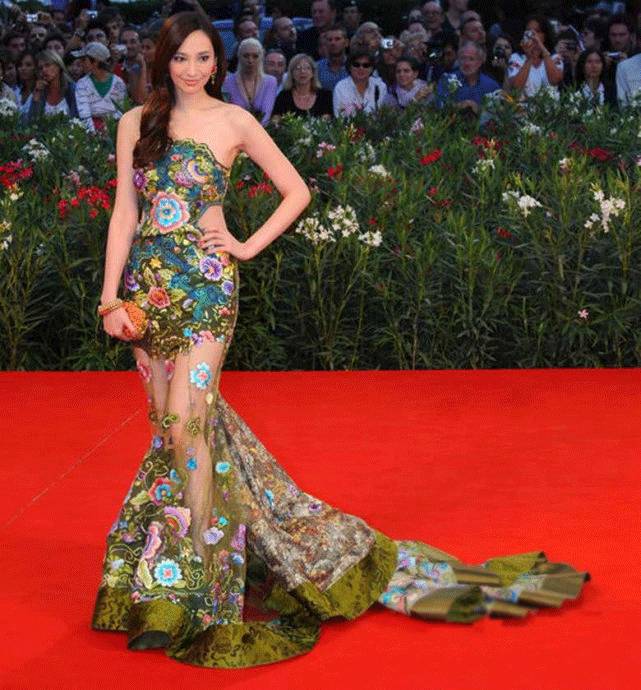 为张静初参加柏林电影节设计的“孔雀”礼服。