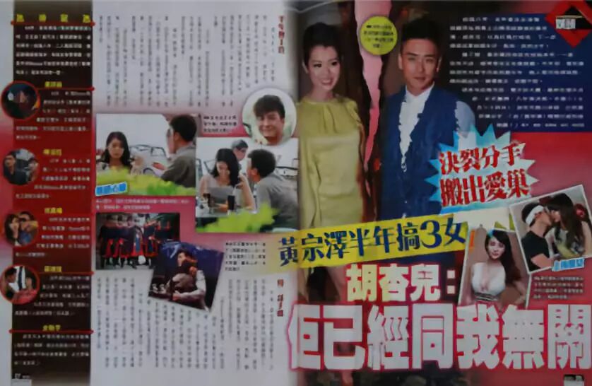哪怕在黄宗泽最见真心的一段恋情——与胡杏儿的8年长跑中,他劈腿的次数也不少。