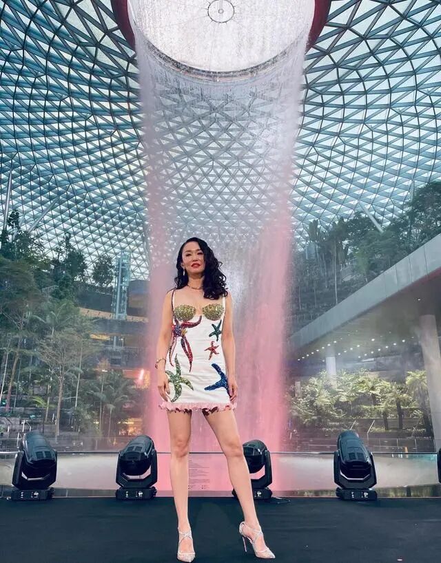 白色经典百搭,色系干净纯粹,用在连衣裙当中,有一种清爽柔和的惊艳感,白色连衣裙比其他色系的连衣裙多了一份纯真的少女气息,娇憨的意味缓缓展露,增添了不一样的温婉简约,是一种优雅与端庄的融合体现,尤其是连衣裙上增添了薄纱的质地,清透精致,整体的风格调子也随着升高,在气质上升华的同时,也在形象感上有一个更好的辅助提升。范文芳这气质不像50岁,无袖外套搭配连衣裙知性简约,优雅高级。