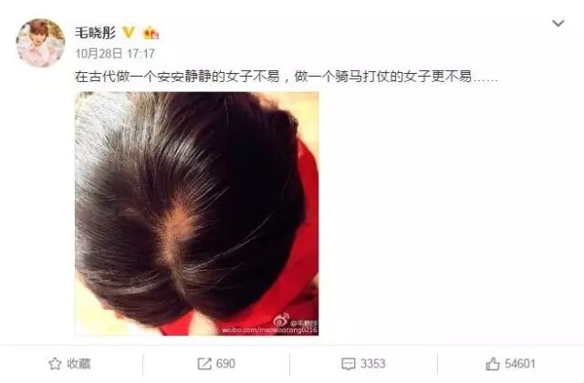 前一段时间,毛晓彤在拍摄现场受伤,头皮更是被揪掉一块。