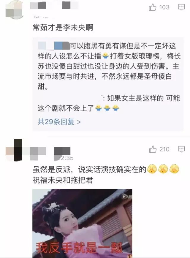 当初在公布李常茹饰演者时,很多人并不看好毛晓彤,因为觉得她的长相太过清纯无公害,但是她常茹黑化后,大家不禁在网络上大骂毛晓彤。
