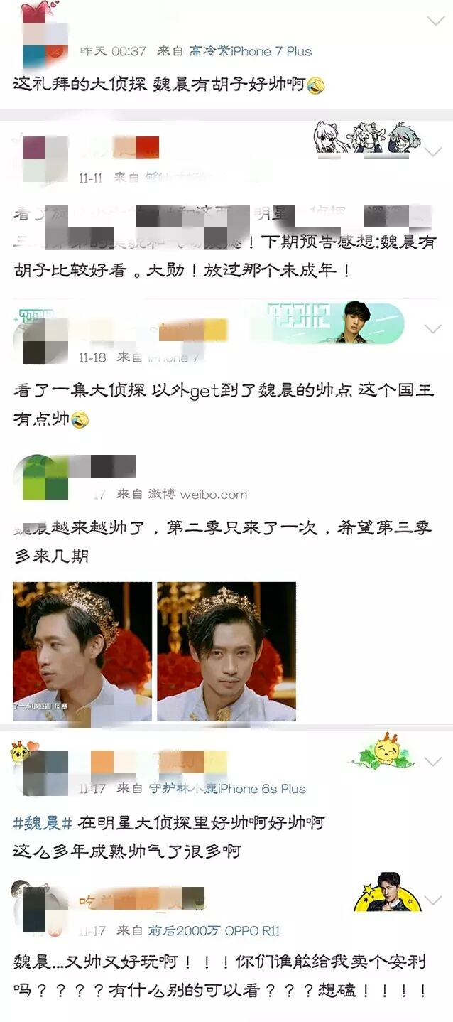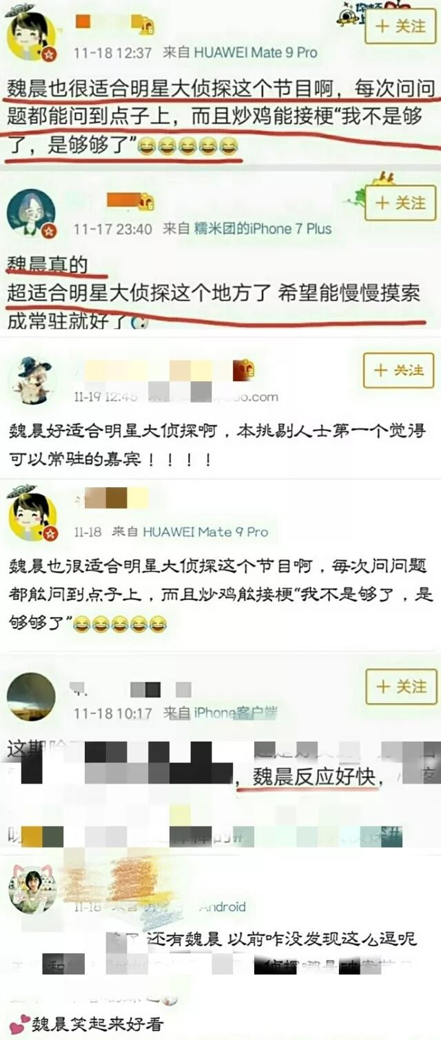 连续两期大家都在明星大侦探看到了魏晨的身影