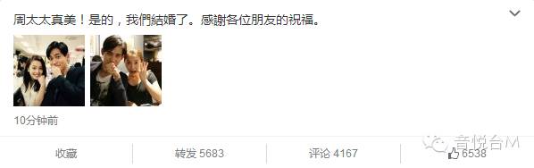 周渝民宣布自己结婚啦! 音悦台M 港台男星 2015-11-10 18:43:45 494 创作不易,用心坚持,欢迎请BaGua喝几杯爱心咖啡!打赏并支持本文 打赏并删除本文 就在刚刚周渝民发出一条消息:“周太太真美!是的,我們結婚了。感謝各位朋友的祝福。”并且晒出于太太的甜蜜合影,宣布自己已经结婚啦!周太太名叫喻虹渊,中国台湾女演员。曾经与仔仔一起出演过电视剧《痞子英雄》。这个消息来的太突然!粉丝们纷纷表示:“好震惊!要流着泪祝福男神!”大家一起来祝福两位百年好合吧~光棍节之前虐狗可还行~~ 创作不易,用心坚持,欢迎请BaGua喝几杯爱心咖啡!打赏并支持本文 打赏并删除本文 感谢您的支持鼓励,我会继续努力的!文章地址:用户邮箱:打赏金额:USDT 请输入数字点击”去打赏“,即可进行打赏支持本文章哦 About the Author 音悦台M 功能介绍:音悦台官方认证公众账号 www.yinyuetai.com 官方认证:北京宽客网络技术有限公司 Related Posts 13年后她们同框击掌互动,还记得2005年的那个夏天吗? 2018-12-19 17:16:50 维密除了令人血脉喷张的内衣走秀外,每年的表演嘉宾阵容竟然也这么强大! 2018-11-09 18:00:36 喵?李洪基张根硕又合作了!? 2018-04-26 18:41:58 有生之年还能看到SuperJunior 13人合体?!利特这样说... 2018-03-14 18:30:28 王菲和她的头号迷弟马天宇合唱了?快戳! 2018-03-06 18:20:46 发表评论